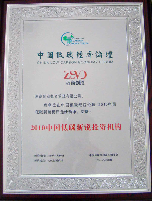 在4月10日開幕的中國低碳經(jīng)濟論壇上,浙商創(chuàng)投榮膺“2010中國低碳新銳投資機構”,是此次論壇上獲此殊榮的唯一一家風險投資機構。浙商創(chuàng)投股份公司總裁、管理公司董事長陳越孟先生代表浙商創(chuàng)投參加論壇交流,并出席頒獎儀式。