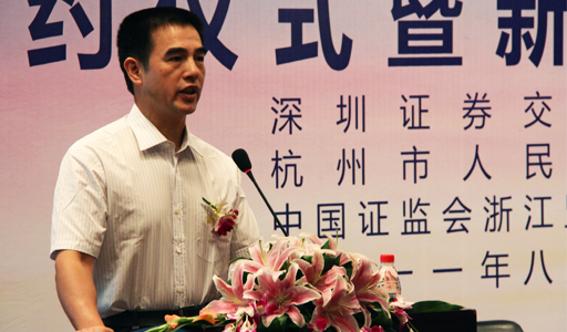 楊戌標(biāo)在簽約儀式上致辭說,這是杭州市人民政府、深圳證券交易所、中國證監(jiān)會浙江監(jiān)管局三方長期友好合作的又一成果,是深入貫徹落實科學(xué)發(fā)展觀,探索科技與金融、企業(yè)與資本結(jié)合的有益嘗試,是加快推進(jìn)杭州經(jīng)濟(jì)發(fā)展方式轉(zhuǎn)變、推進(jìn)產(chǎn)業(yè)轉(zhuǎn)型升級和區(qū)域金融中心建設(shè)的重要舉措。楊戌標(biāo)指出,在杭州推進(jìn)科學(xué)發(fā)展、推進(jìn)轉(zhuǎn)型升級和創(chuàng)業(yè)創(chuàng)新的歷史進(jìn)程中,離不開資本市場的強(qiáng)有力支持。企業(yè)上市(杭州)培育基地的組建和運行,將為我市乃至浙江、長三角企業(yè)上市發(fā)展,提供更為高效、便捷、權(quán)威的服務(wù)平臺;將為吸引企業(yè)、資本、技術(shù)、人才在杭對接和集聚,提供更為豐富的信息平臺;將為民營企業(yè)、中小企業(yè)、科技企業(yè)的創(chuàng)業(yè)創(chuàng)新,提供最為直接的發(fā)展平臺。杭州市各級各部門要充分認(rèn)識培育基地的重要性,積極落實備忘錄的各項條款,為基地的運作創(chuàng)造良好條件,積極提供各項支持和保障。也希望深圳證券交易所、浙江監(jiān)管局在今后的工作中,更多地關(guān)注杭州,為杭州企業(yè)上市、為企業(yè)發(fā)展壯大出謀劃策,推進(jìn)各方共贏。