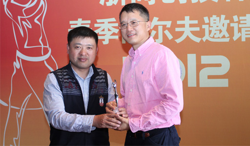 為北京中軟金卡信息公司董事長王軍(右)頒得“凈桿冠軍”