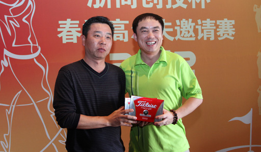 浙商創投董事長陳越孟(右)為北京金房房地產公司董事長金飛鴻(左)頒得“總桿冠軍”