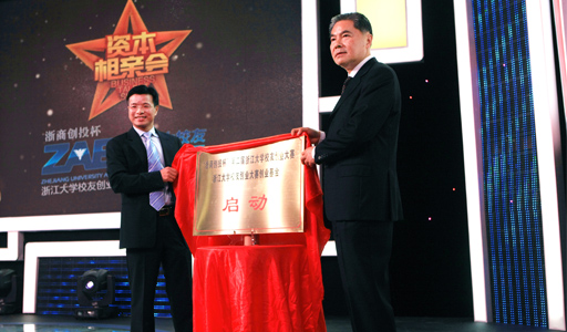 最后,浙江大學黨委書記金德水與浙商創投董事長陳越孟一起為“浙商創投杯第二屆浙江大學校友創業大賽”暨“浙江大學校友創業大賽創業基金”啟動揭幕。